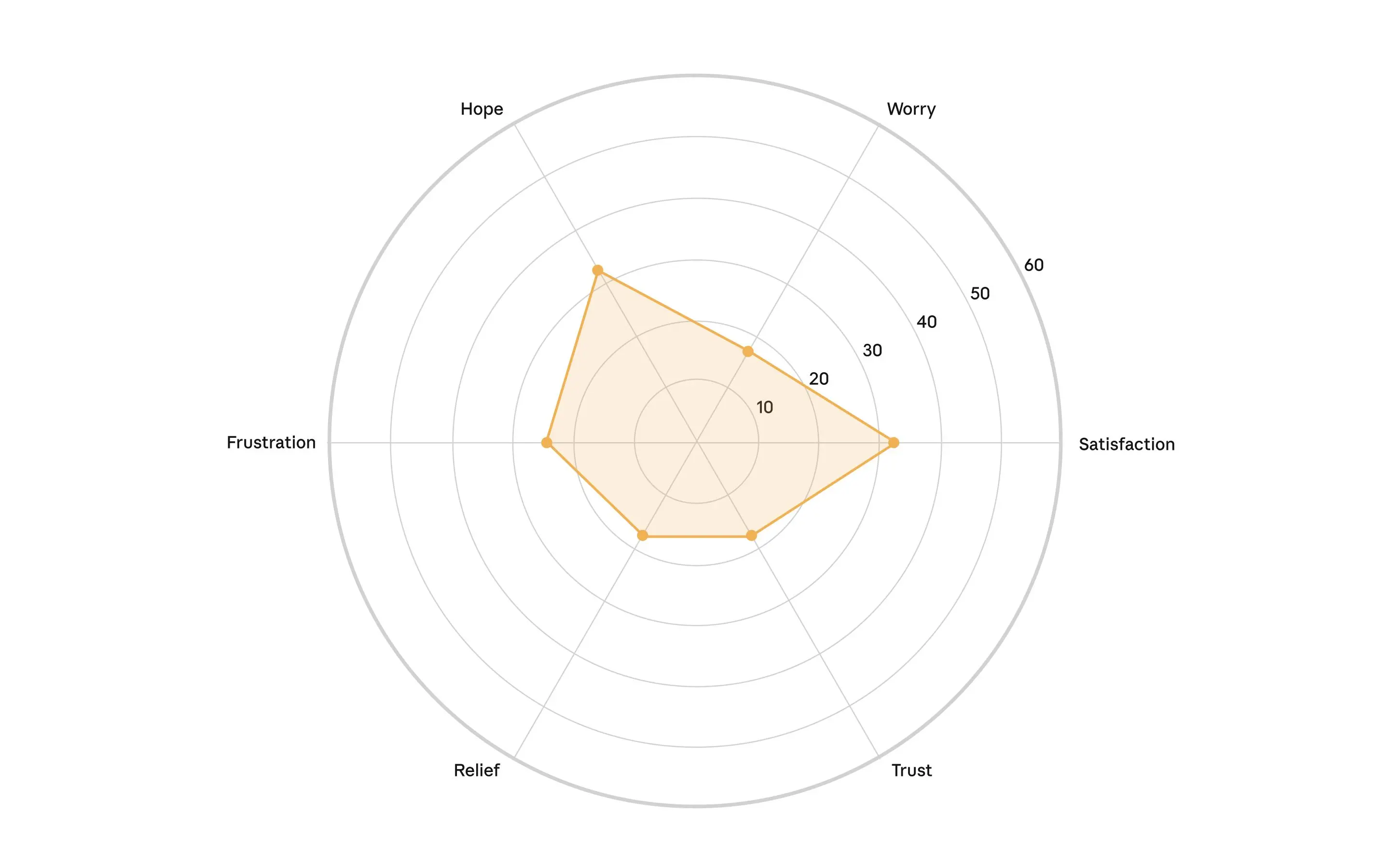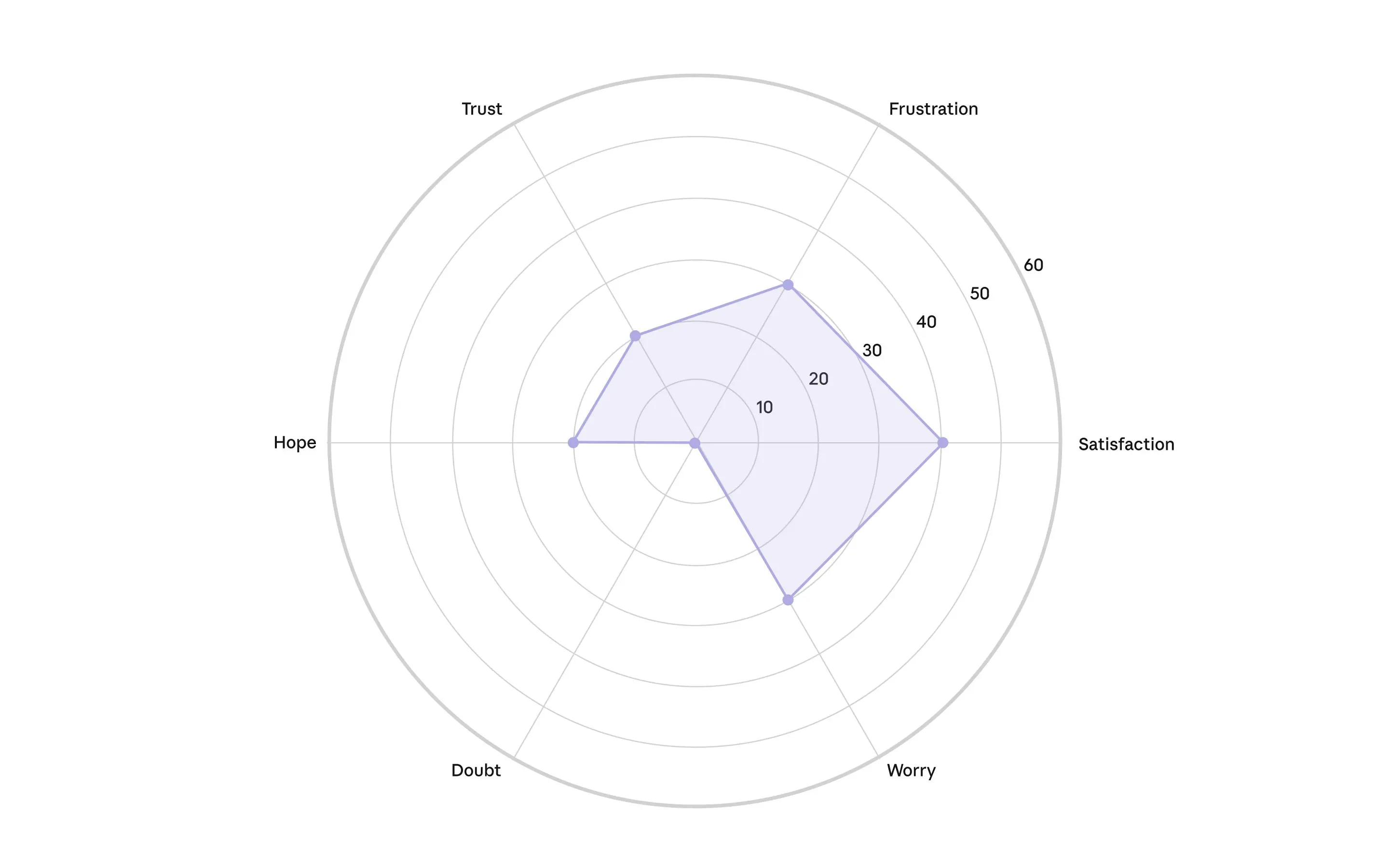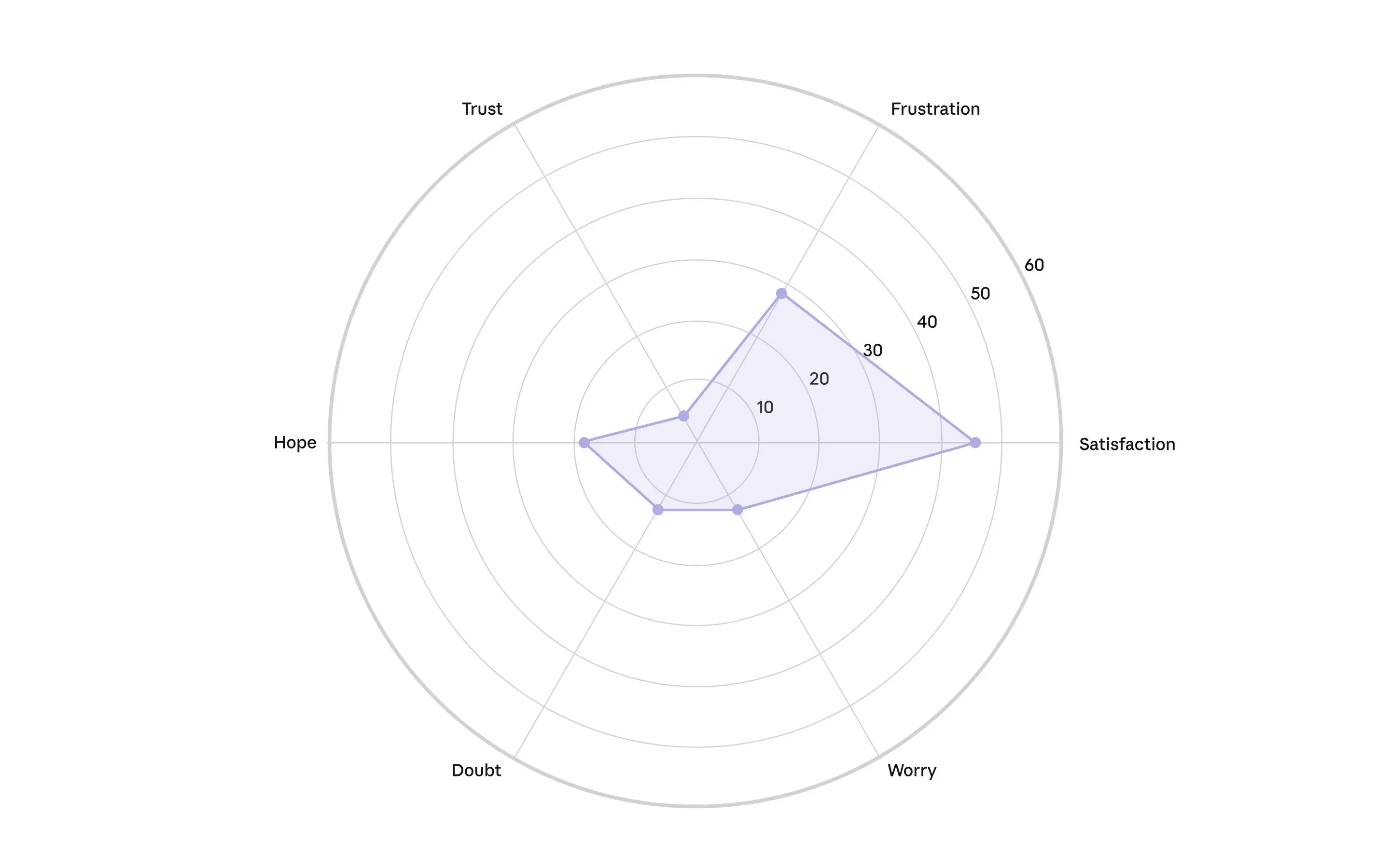 We also classified the intensity of different emotions exhibited within professionals’ interviews (see figure above). Different professions exhibited remarkably uniform emotional profiles characterized by high levels of satisfaction. However, this was coupled with frustration, suggesting professionals are finding AI useful while encountering significant implementation challenges.