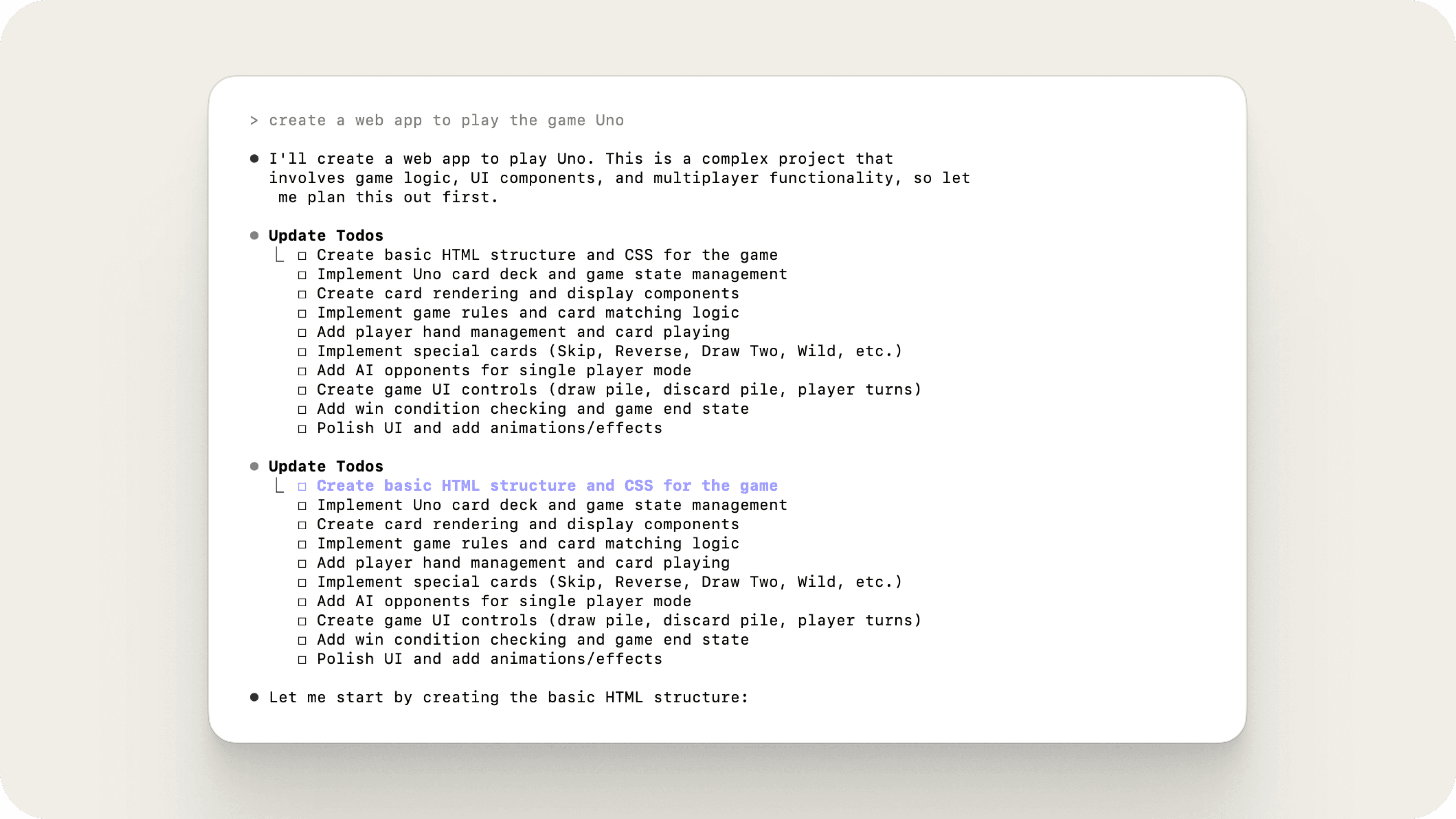 In Claude Code, Claude shows its planned actions through a real-time to-do checklist, and users can jump in at any time to ask about or adjust Claude’s workplan. The challenge is in finding the right level of detail. Too little information leaves humans unable to assess whether the agent is on track to achieve its goal. Too much can overwhelm them with irrelevant details. We try to take a middle ground but we’ll need to iterate on this further.