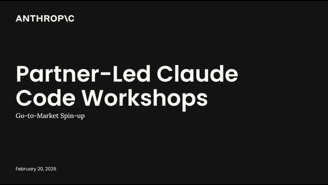Watch this 30-minute enablement session to learn how to run hands-on Partner-Led Claude Code Workshops to generate pipeline, deepen client relationships, and position your implementation services — with marketing development funds (MDF) and Anthropic's full support behind you.